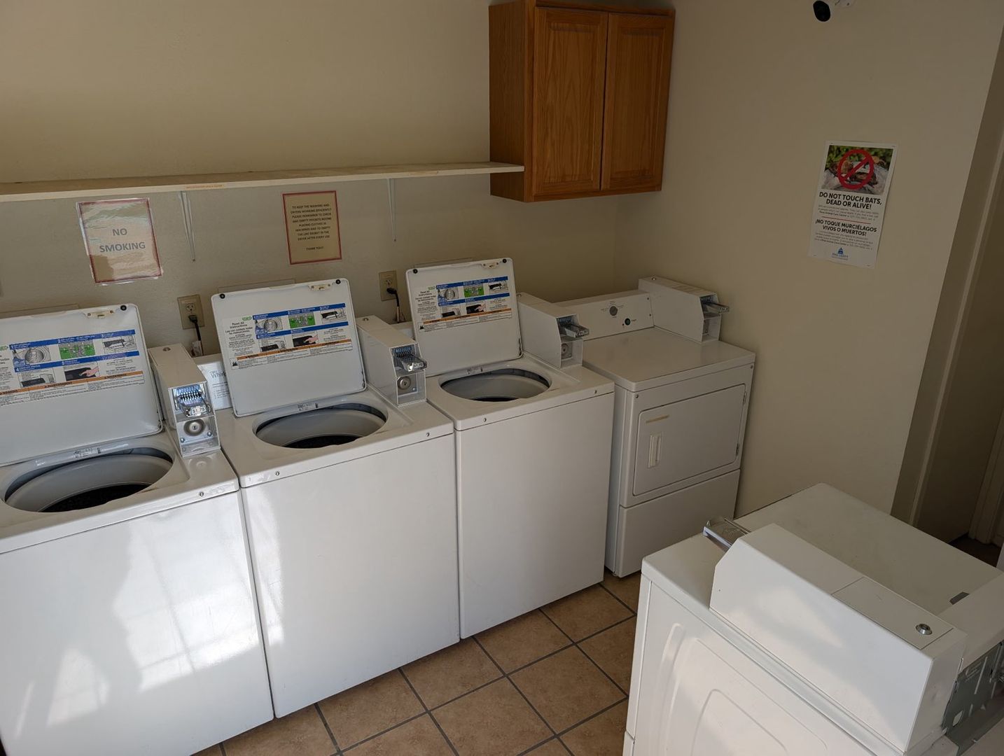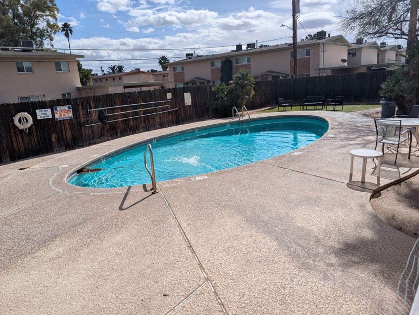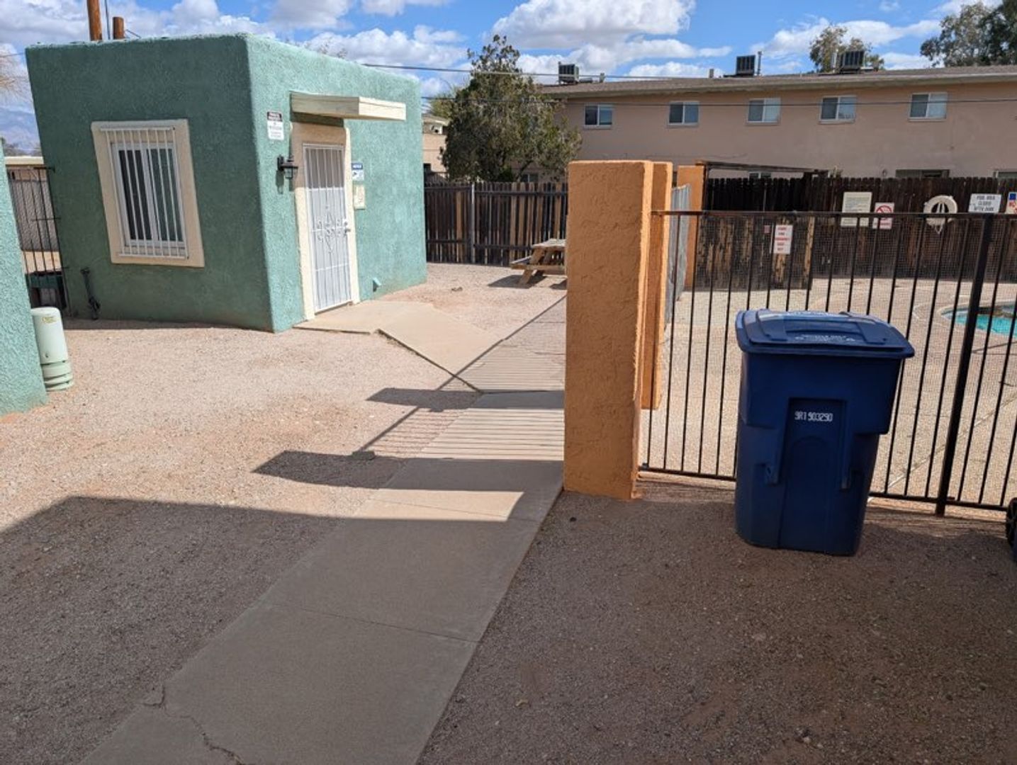 Community Laundry room and pool. One reserved parking. Evaprorative cooling.